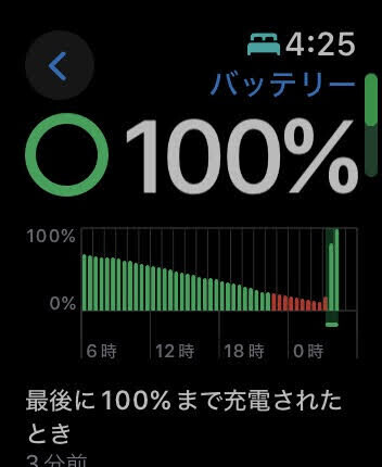 カタログスペックでは 18 時間という不安になる数字だけど、かなり時計使いまくってる状態での試験やね。バッテリなんて得てしてカタログを下回る体験だけど、倍以上保つのは意外だった。