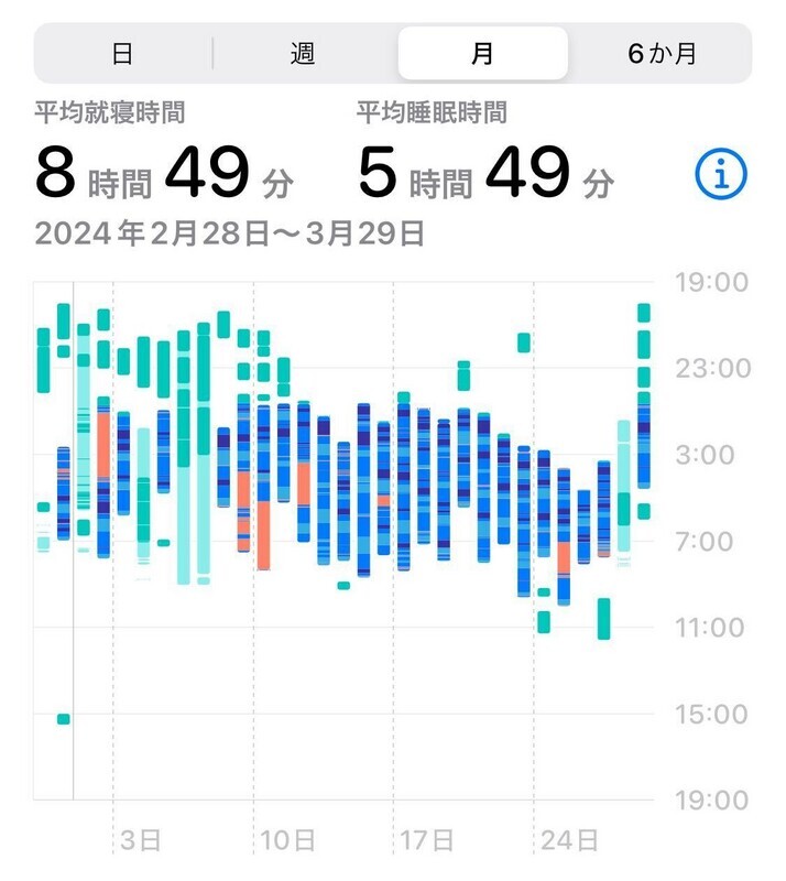 そういう感じなので、自然と10時間寝て元気なこともあれば、3時間しか寝てないこともある。記録が残っていれば眠かったり疲れてたりするのが睡眠不足かどうか切り分けられる。仕事の忙しさやストレスが睡眠に反映されているのも読み取れたりする。